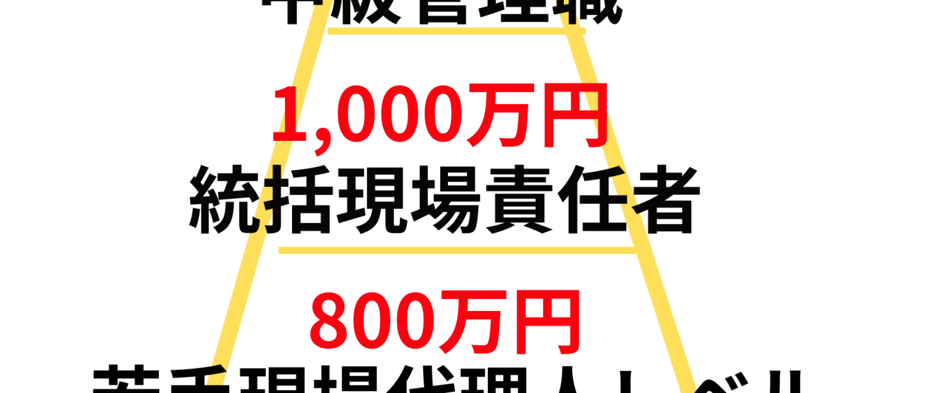 建築施工管理未経験者であれば最低年収400万円ベーススタートとし、1級建築施工管理技士が受かれば600万円。その後、現場経験を積み、現場代理人として管理ができれば最大1500万円まで上がるシステムになります。